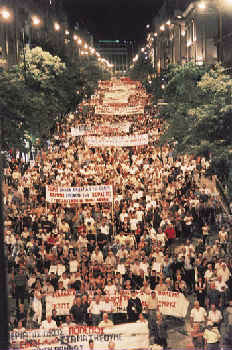 Demonstration i Athen i december 2001 mot USA:s krig mot terrorismen |